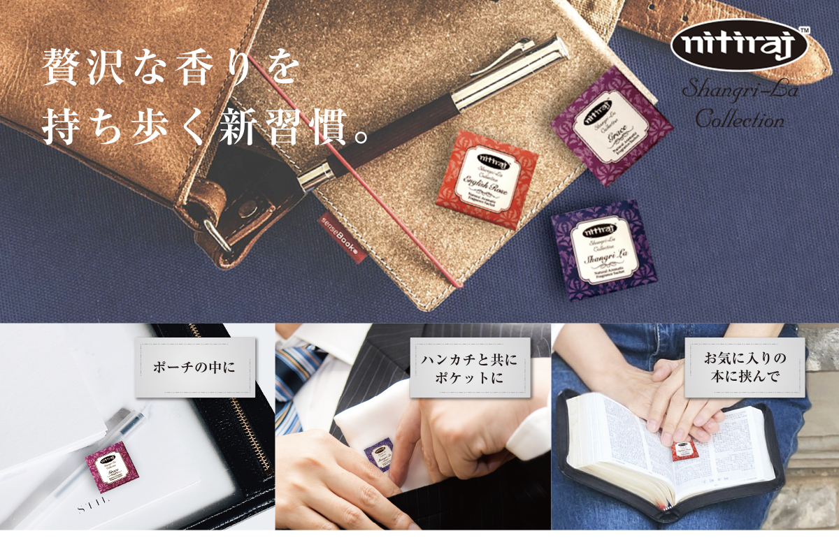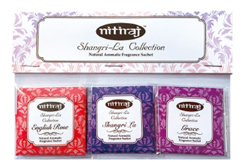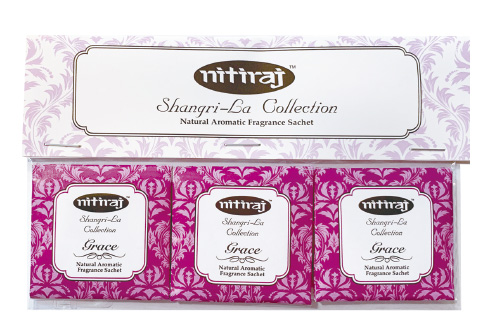 3.Fragrance sachet お試しパック 格式高い老舗ブランドNitiraj商品ラインナップの中から、より選りすぐりの3つの香りを1セットにしました。名刺入れやポケットに忍ばせやすい直径3.5センチのコンパクトサイズ。 grace(気品) 気持ちを向上させる気品高い甘くフローラルな プルメリアの香り。 Shangri-la(シャングリラ) 心を穏やかにする優雅で贅沢な白檀と甘く爽やかなバニラの香り。 rose(薔薇) 心身をリラックスさせる芳醇なローズの香り。